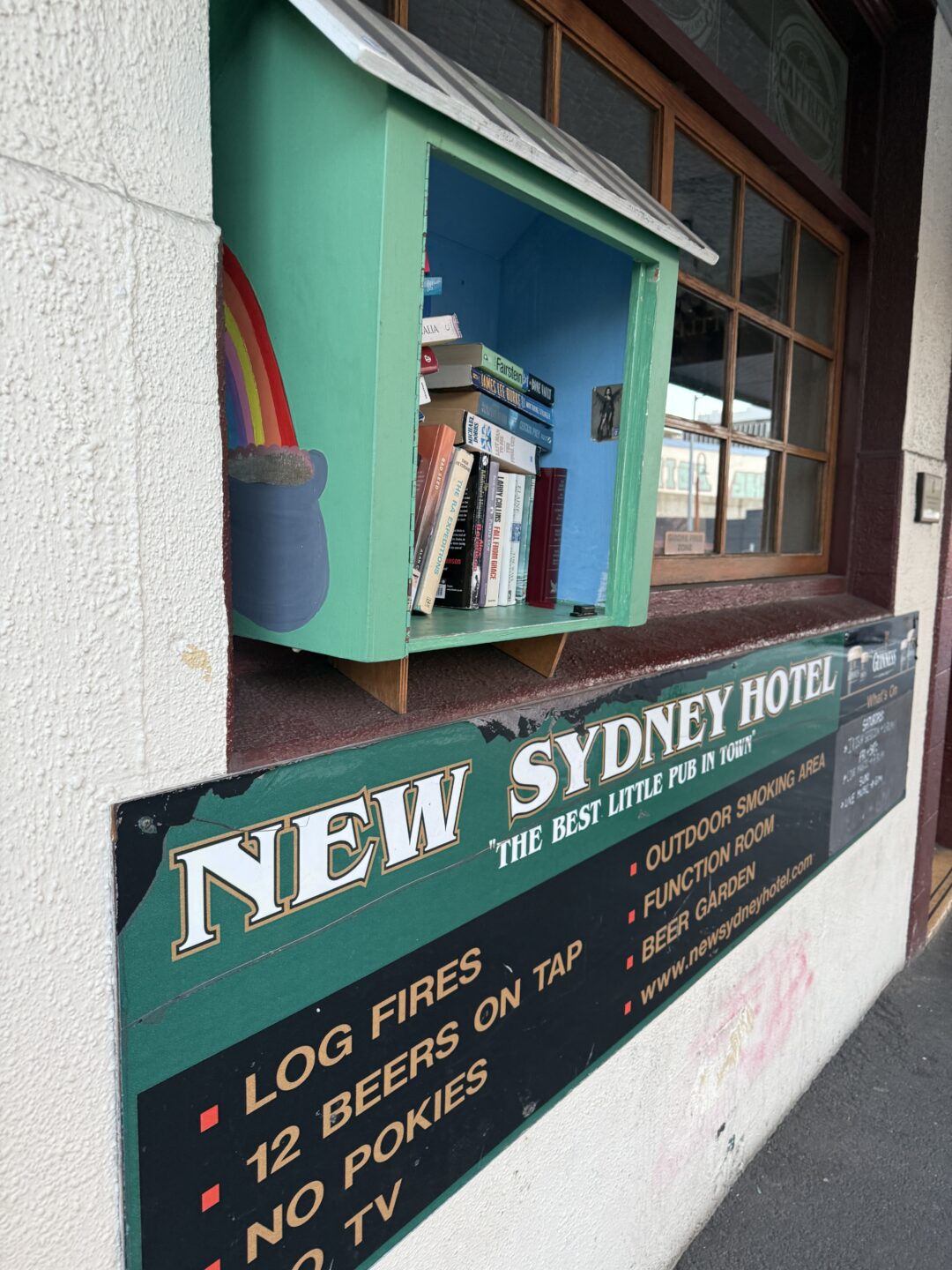 The New Sydney Hotel in Hobart is at the end of the Elizabeth Street Mall, so right in town – and usually with a bicycle parked outside, a Tasmanian actor propping up the bar inside and somebody rifling through the free books next to the window.