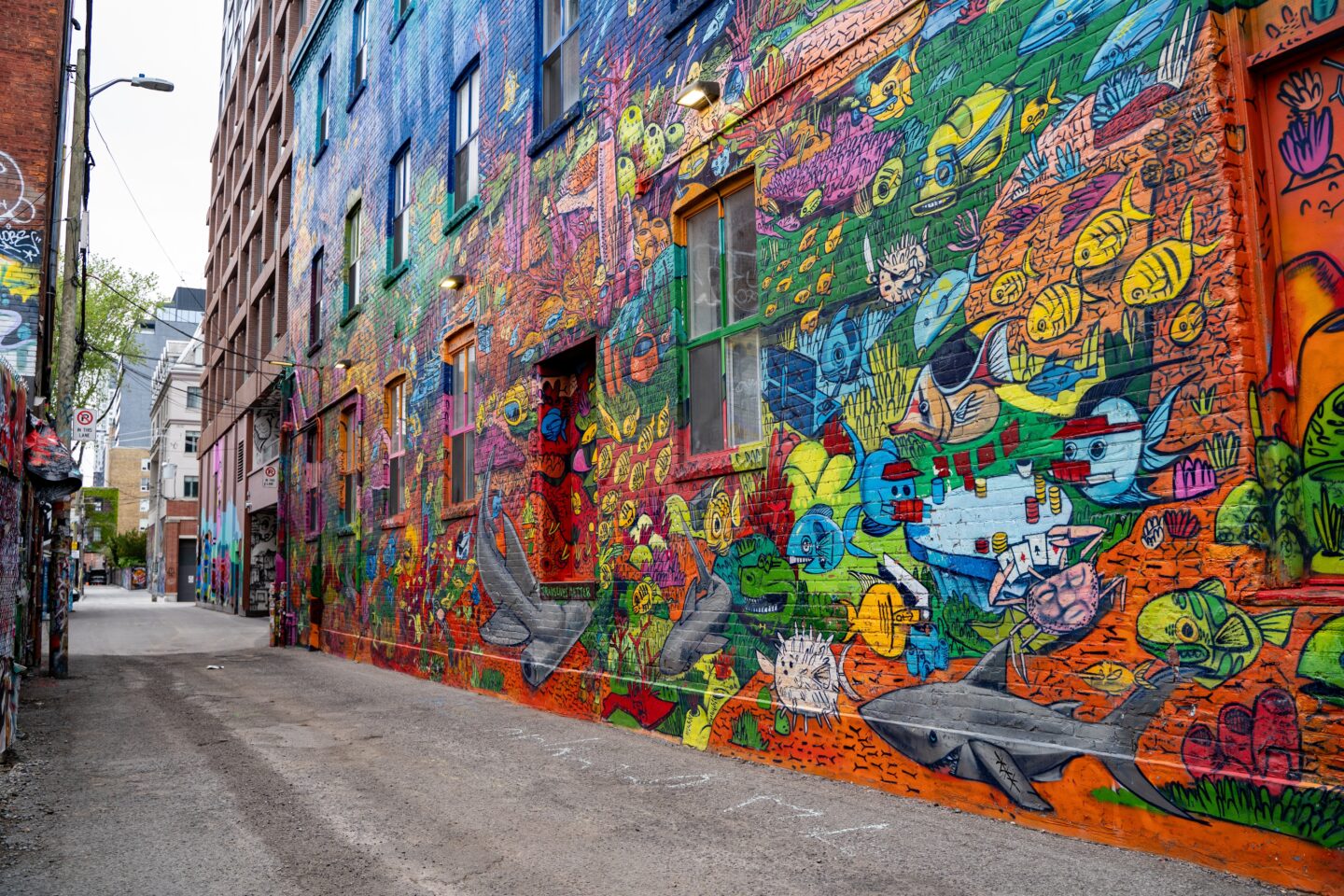 1. Big budget beautification of has-been, boring, tag graffiti. See Rush Lane, Toronto.