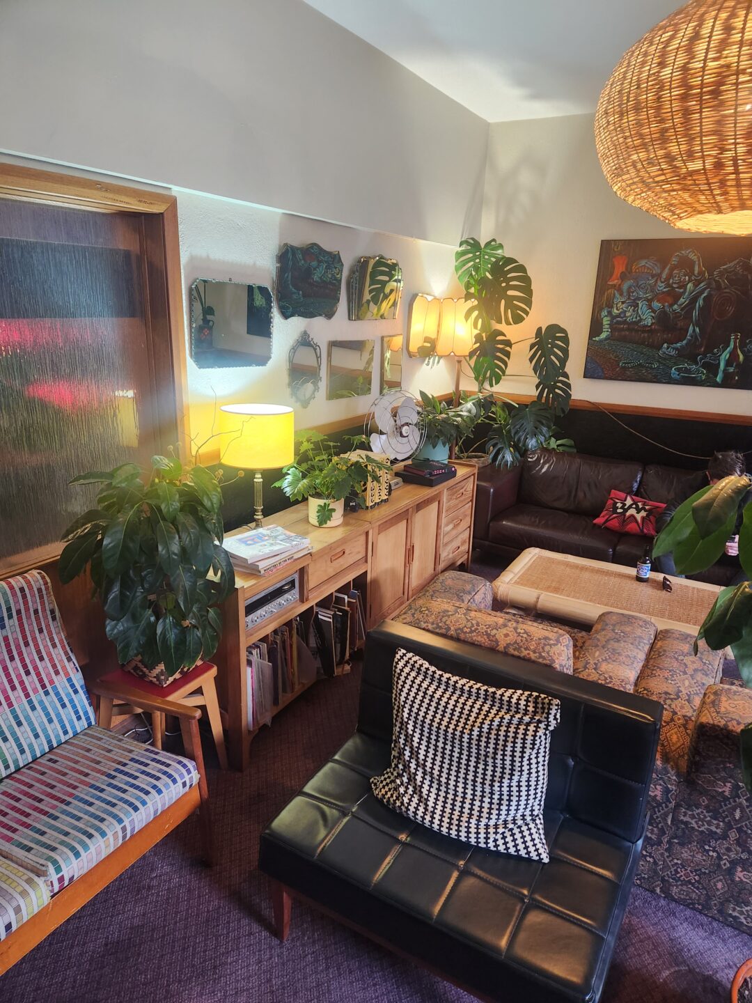 The interior bar is roomy, comfortable and non-guests (Hobart locals who come in here to knit and drink wine) pop in and out.